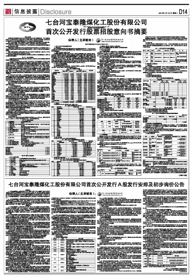 七台河宝泰隆煤化工股份有限公司首次公开发行A股发行安排及初步询价公告