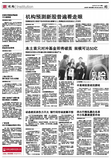 本土首只对冲基金即将破茧 规模可达50亿