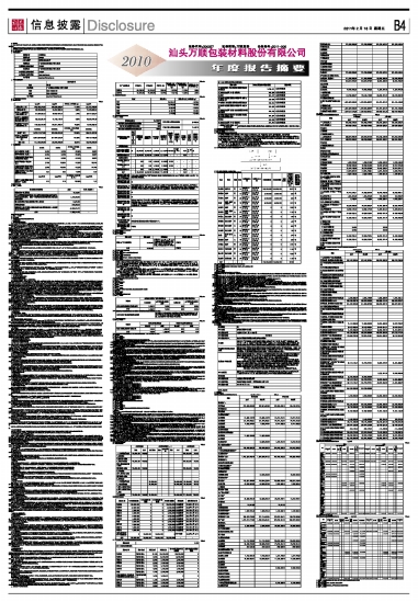 证券代码:300057 证券简称:万顺股份 公告编号:2011-008 汕头万顺包装材料股份有限公司2010年度报告摘要 2011-02-18 来源:证券时报网 作者: