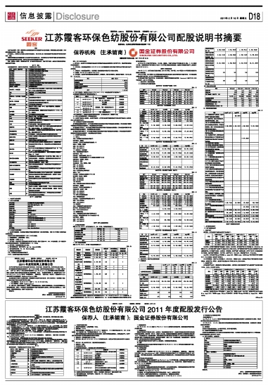 江苏霞客环保色纺股份有限公司2011年度配股发行公告