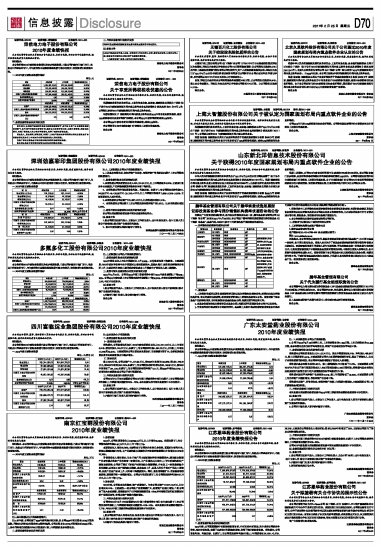 证券代码:002433 证券简称:太安堂 公告编号:2011-002 广东太安堂药业股份有限公司2010年度业绩快报 2011-02-25 来源:证券时报网 作者:
