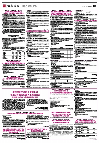 浙江三花股份有限公司公告(系列) 2011-11-04 来源:证券时报网 作者: