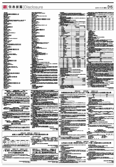 (注:本次权益变动期间,由于2011年5月实施了2010年度利润分配,公司总股本由132,855,435股增至172,712,065股。) 二、其他相关说明 本次减持遵守了相关法律、法规、规章、业务规则的规定。 特此公告。 成都卫士通信息产业股份有限公司 董 事 会 二〇一一年十一月四日 本版导读: