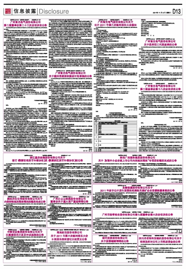 广州智光电气股份有限公司公告(系列) 2011-11-08 来源:证券时报网 作者: