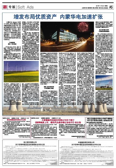 增发布局优质资产 内蒙华电加速扩张 2011-11-23 来源:证券时报网 作者: