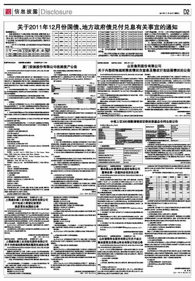 关于2011年12月份国债、地方政府债兑付兑息有关事宜的通知