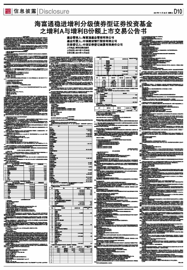 海富通稳进增利分级债券型证券投资基金之增利A与增利B份额上市交易公告书