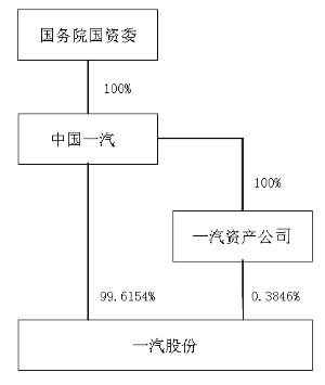 中国一汽直接及间接持有收购人一汽股份100%股权,系一汽股份的控股股东。国务院国资委持有中国一汽100%权益,是中国一汽的唯一出资人,为收购人的实际控制人。