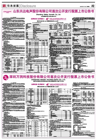 二、经营业绩和财务状况的简要说明 本公司自成立以来,专注于微型电声元器件及电声组件的研发、生产和销售。2011年度,本公司实现营业总收入、利润总额、归属于发行人股东的净利润分别为45,174.58万元、6,236.90万元、5,436.93万元,分别比上年同期增长16.76%、5.90%、7.67%。2011年度,公司净利润水平较2010年同期稳步增长。2011年度经营活动产生的现金流量净额为5,705.48万元,比2010年度增长15.02%,表明公司的现金流状况良好。 总体看来,公司2011年度经营状况良好,财务状况稳定,没有对财务数据和指标产生重大影响的其他重要事项。 第六节 其他重要事项 一、公司已向深圳证券交易所承诺,将严格按照中小企业板的有关规则,在上市后三个月内尽快完善公司章程等相关规章制度。 二、公司通过高新技术企业复审,重新被认定为高新技术企业 根据山东省科技厅、山东省财政厅、山东省国税局、山东省地税局联合下发的《关于济南圣泉集团股份有限公司等504家企业通过高新技术企业复审的通知》(鲁科高〔2012〕19号文,文件签署日期为2012年1月30日,实际下发时间为2012年2月初),本公司通过了高新技术企业复审,资格有效期为3年,所得税优惠期为2011年1月1日至2013年12月31日。 三、除通过高新技术企业复审以外,本公司自2012年1月31日刊登首次公开发行股票招股意向书至本上市公告书刊登前,没有发生可能对公司有较大影响的重要事项: 1、公司严格依照《公司法》、《证券法》等法律法规的要求,规范运作,经营状况正常;主营业务目标进展情况正常; 2、公司生产经营情况、外部条件或生产环境未发生重大变化(包括原材料采购和产品销售价格、原材料采购和产品销售方式、所处行业或市场等均未发生重大变化); 3、公司未订立可能对公司资产、负债、权益和经营成果产生重大影响的重要合同。 4、公司未发生重大关联交易;公司资金未被关联方非经营性占用; 5、公司未发生重大投资; 6、公司未发生重大资产(或股权)购买、出售及置换; 7、公司住所没有变更; 8、公司董事、监事、高级管理人员及核心技术人员未发生变化; 9、公司未发生重大诉讼、仲裁事项; 10、公司未发生对外担保等或有事项; 11、公司的财务状况和经营成果未发生重大变化; 12、公司未召开董事会、监事会和股东大会; 13、公司无其他应披露的重大事项。 第七节 上市保荐机构及其意见 一、上市保荐机构情况 保荐机构(主承销商):国信证券股份有限公司 法定代表人: 何如 住所: 深圳市红岭中路1012号国信证券大厦 联系地址: 北京市西城区金融街兴盛街6号国信证券大厦 电话: 010-88005400 传真: 010-66211975 保荐代表人: 徐懿、张邦明 项目协办人: 王水兵 项目联系人: 徐懿、叶伟、杜长庆、何鹏 二、上市保荐机构的推荐意见 上市保荐机构国信证券已向深圳证券交易所提交了《国信证券股份有限公司关于山东共达电声股份有限公司股票上市保荐书》,国信证券的推荐意见如下: 国信证券认为共达电声申请其股票上市符合《中华人民共和国公司法》、《中华人民共和国证券法》及《深圳证券交易所股票上市规则》(2008年修订)等有关规定,共达电声股票具备在深圳证券交易所上市的条件。国信证券愿意推荐共达电声的股票在深圳证券交易所上市交易,并承担相关保荐责任。 本版导读: