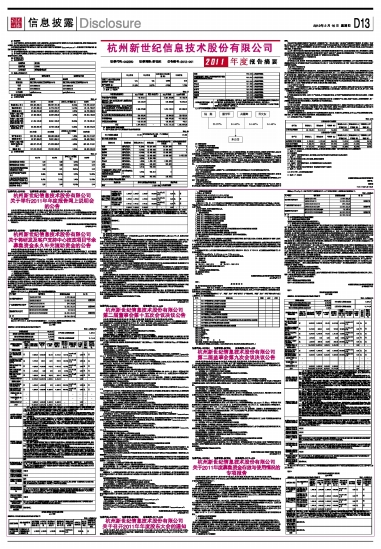 杭州新世纪信息技术股份有限公司2011年度报告摘要 2012-02-16 来源:证券时报网 作者: