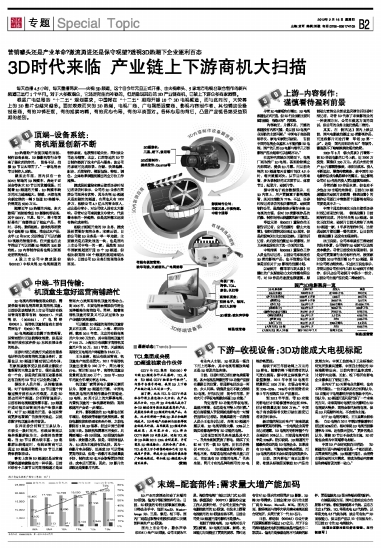 营销噱头还是产业革命?激流勇进还是保守观望?透视3D热潮下企业逐利百态3D时代来临 产业链上下游商机大扫描 2012-02-16 来源:证券时报网 作者: