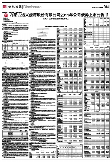 深圳证券交易所(以下简称“深交所”)对内蒙古远兴能源股份有限公司2011年公司债券(以下简称“本期债券”)上市申请及相关事项的审查,均不构成对本期债券的价值、收益及兑付作出实质性判断或任何保证。