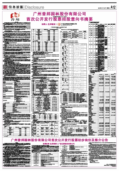 广州普邦园林股份有限公司首次公开发行股票初步询价及推介公告
