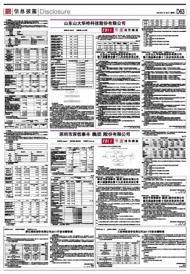 深圳市深信泰丰(集团)股份有限公司2011年度报告摘要 2012-02-29 来源:证券时报网 作者: