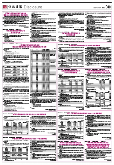 证券代码:002079 证券简称:苏州固锝 公告编号:2012-001 苏州固锝电子股份有限公司2011年度业绩快报 2012-02-29 来源:证券时报网 作者: