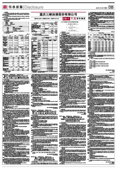 重庆三峡油漆股份有限公司2011年度报告摘要