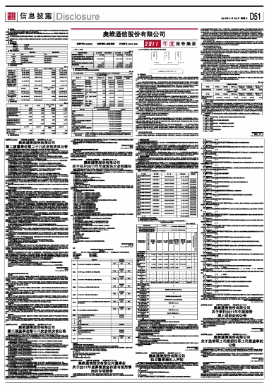 奥维通信股份有限公司2011年度报告摘要
