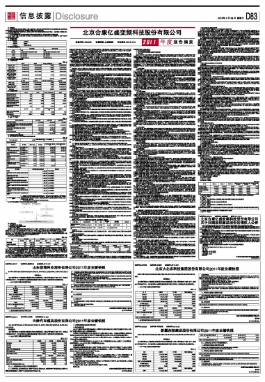 北京合康亿盛变频科技股份有限公司2011年度报告摘要