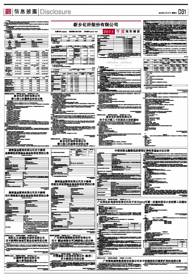 证券代码:000949 证券简称:新乡化纤 公告编号:2012—007 新乡化纤股份有限公司2011年度报告摘要 2012-03-02 来源:证券时报网 作者:
