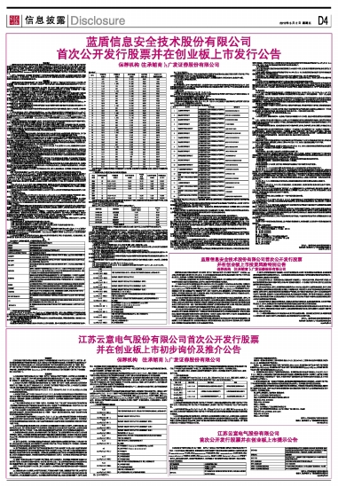 蓝盾信息安全技术股份有限公司首次公开发行股票并在创业板上市投资风险特别公告