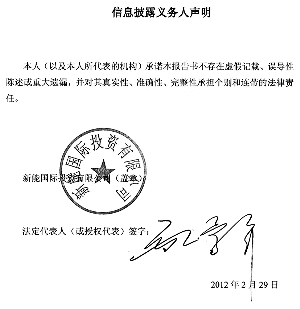 四、信息披露义务人及其实际控制人最近五年所受处罚情况 新能国际及其实际控制人陈义和先生已经出具声明,新能国际最近五年内未受过行政处罚、刑事处罚(与证券市场明显无关的除外),亦未曾涉及与经济纠纷有关的重大民事诉讼或者仲裁事项。其主要管理人员也未受过行政处罚、刑事处罚(与证券市场明显无关的除外),亦未曾涉及与经济纠纷有关的重大民事诉讼或者仲裁事项。 五、信息披露义务人主要负责人员