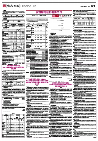 安琪酵母股份有限公司公告(系列) 2012-03-10 来源:证券时报网 作者: