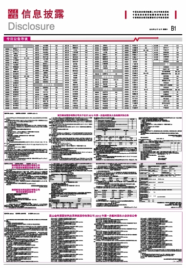 昆山金利表面材料应用科技股份有限公司2012年第一次临时股东大会决议公告