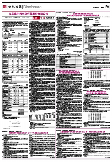 江苏维尔利环保科技股份有限公司2011年度报告摘要
