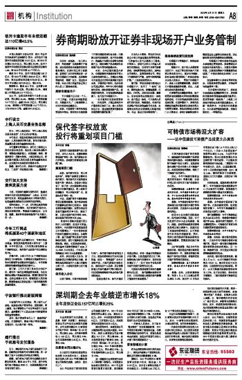 证券时报记者 黄兆隆 在仅有一台电脑、一位工作人员的“外延现场”完成股票开户流程,或许是投资者未来能享受到的服务模式。证券时报记者日前获悉,监管部门正在研究制定进一步放开非现场开户的政策,其思路将围绕外延“现场”定义,通过技术手段、社区小型工作室的设立和工作人员上门服务来实现。 期盼非现场开户 “开户现场可以只有一个人、一个工作室,只要后台风险管控住,问题就不大。”上海某即将上市的大型券商总裁表示。 此前,在监管层下发的机构监管通报中指出,将研究在合规前提下开展非现场受理柜台业务。而按照目前的法规要求,客户的证券账户、资金账户均须在证券营业部现场开立,购买理财产品必须到柜台签署产品合同和风险揭示书。 对此,业内反馈的意见大多为,非现场服务手段能有效节省人力成本和硬件投入。并建议对风险不大或通过回访等手段风险可控的业务,不强求客户临柜,允许证券公司通过网站、呼叫中心等非现场途径受理。例如销售理财产品、投资顾问签约等,在有效控制风险前提下,也可放开非现场开户。 一位不愿具名的券商高管表示,“只有这样,才能让券商的中介服务真正细化下去,渗入市民的生活之中,通过提供更多的服务来实现资源的最优配置。” 在业内人士看来,若允许在社区设立小型工作室也能达到同样效果。“工作室的人员可以提供上门服务。在管理上,券商可以先与工作室人员签订权责协议,后者的行为将代表着券商,券商则承担相关责任。这样由公司来管人,监管层来管公司,若出了问题将进行严查,这样可防范风险扩散。”上述券商高管表示。 据了解,平安证券曾在深圳试点非现场开户,采用了“一体机”技术,即将电脑主机、防爆触摸屏、扫描仪、打印机、身份证识别器、摄像头、语音设备等全部集成在一体机中。客户通过一体机,可与坐席人员进行实时语音、视频通讯,办理开设证券账户和证券资金账号的业务,实现营业部柜台向销售网点终端的延伸。不过,该试点尚未得到推广。 服务终端改变引发洗牌 非现场开户若能放开,将推动券业业态变革。 “现场开户,客户本人必须到营业部开户,决定了营业部的客户开发将以营业部为中心,逐步向外辐射,但有地理位置的限制。”招商证券相关业务人员表示,“若放开非现场开户,理论上互联网覆盖到哪,券商的开户服务就能延伸到哪。那么,人就成为券商的服务终端。” 在国泰君安总裁陈耿看来,客户将更多地根据服务水平和实际需要来选择券商,而不必考虑券商营业部的地理位置。在这种情况下,券商的品牌建设和差异化服务将比券商的网点布局更为重要。国信证券经纪业务部门人士则表示,券商开辟新阵地将不需要通过设立新营业部来实现,那么新设营业部的热情将会迅速降温。 “非现场开户将对券商的信息技术系统提出更高要求。券商需要加大信息技术系统的投入、丰富技术服务手段,以提高远程客户的满意度和忠诚度。”中投证券经纪业务部门人士表示。 这也意味着大小券商有同样的机会,市场竞争将更加激烈,并推动平均佣金费率下滑。 “在市场导向和推动下,券商或主动或被动地调整经营方向,券商提供的服务将显现越来越强的差异化,甚至带来新一轮洗牌。”上海某上市券商分管经纪业务的副总裁表示,在新一轮竞争中,大券商并非胜算就大,中小券商若能抓准机遇、找准市场定位,一样能胜出。 本版导读: