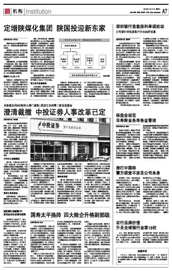 澄清裁撤 中投证券人事改革已定