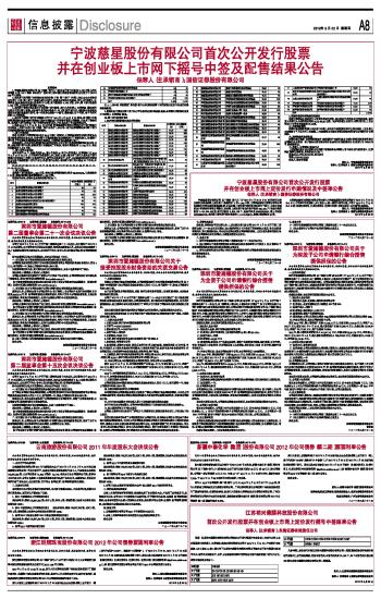 | 宁波慈星股份有限公司首次公开发行股票 并在创业板上市网下摇号中签及配售结果公告 | 2012-03-22 | |