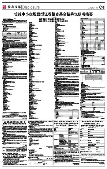 信诚中小盘股票型证券投资基金招募说明书摘要