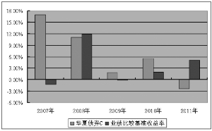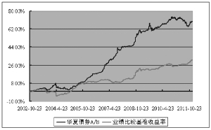 基金管理人:华夏基金管理有限公司 基金托管人:交通银行股份有限公司 报告送出日期:二〇一二年三月三十日 §1重要提示 基金管理人的董事会、董事保证本报告所载资料不存在虚假记载、误导性陈述或重大遗漏,并对其内容的真实性、准确性和完整性承担个别及连带的法律责任。本年度报告已经三分之二以上独立董事签字同意,并由董事长签发。 基金托管人交通银行股份有限公司根据本基金合同规定,于2012年3月27日复核了本报告中的财务指标、净值表现、利润分配情况、财务会计报告、投资组合报告等内容,保证复核内容不存在虚假记载、误导性陈述或者重大遗漏。 基金管理人承诺以诚实信用、勤勉尽责的原则管理和运用基金资产,但不保证基金一定盈利。 基金的过往业绩并不代表其未来表现。投资有风险,投资者在作出投资决策前应仔细阅读本基金的招募说明书及其更新。 本报告中的财务资料经审计,普华永道中天会计师事务所有限公司为本基金出具了无保留意见的审计报告,请投资者注意阅读。 本报告期自2011年1月1日起至12月31日止。 本年度报告摘要摘自年度报告正文,投资者欲了解详细内容,应阅读年度报告正文。 §2基金简介 2.1基金基本情况 ■ 2.2基金产品说明 ■ 2.3基金管理人和基金托管人 ■ 2.4信息披露方式 ■ §3主要财务指标、基金净值表现及利润分配情况 3.1主要会计数据和财务指标 金额单位:人民币元 ■ 注:①所述基金业绩指标不包括持有人认购或交易基金的各项费用,计入费用后实际收益水平要低于所列数字。 ②本期已实现收益指基金本期利息收入、投资收益、其他收入(不含公允价值变动收益)扣除相关费用后的余额,本期利润为本期已实现收益加上本期公允价值变动收益。 3.2基金净值表现 3.2.1基金份额净值增长率及其与同期业绩比较基准收益率的比较 华夏债券A/B: ■ 华夏债券C: ■ 3.2.2自基金合同生效以来基金份额累计净值增长率变动及其与同期业绩比较基准收益率变动的比较 华夏债券投资基金 份额累计净值增长率与业绩比较基准收益率历史走势对比图 (2002年10月23日至2011年12月31日) 华夏债券A/B ■ 华夏债券C ■ 3.2.3过去五年基金每年净值增长率及其与同期业绩比较基准收益率的比较 华夏债券投资基金 过去五年基金净值增长率与业绩比较基准收益率的对比图 华夏债券A/B ■ 华夏债券C ■ 3.3过去三年基金的利润分配情况 华夏债券A/B: 单位:人民币元 ■ 华夏债券C: 单位:人民币元 ■ §4管理人报告 4.1基金管理人及基金经理情况 4.1.1基金管理人及其管理基金的经验 华夏基金管理有限公司成立于1998年4月9日,是经中国证监会批准成立的首批全国性基金管理公司之一。公司总部设在北京,在北京、上海、深圳、成都、南京、杭州和广州设有分公司,在香港设有子公司。公司是首批全国社保基金投资管理人、首批企业年金基金投资管理人、境内首批QDII基金管理人、境内首只ETF基金管理人,以及特定客户资产管理人,香港子公司是首批RQFII基金管理人。华夏基金是业务领域最广泛的基金管理公司之一。 2011年,在市场持续下跌的情况下,华夏基金继续坚持以深入的投资研究为基础,高度重视风险管理,努力为投资人规避风险。根据银河证券基金研究中心基金业绩统计报告,在基金年度分类排名中(截至2011年12月30日数据),华夏收入股票在217只标准股票型基金中排名第5;华夏大盘精选混合在43只偏股型基金(股票上限95%)中排名第4;华夏策略混合在48只灵活配置型基金(股票上限80%)中排名第5;华夏兴和封闭及华夏兴华封闭在25只封闭式普通股票型基金中分别排名第3和第4。 为引导投资者树立正确的基金投资理念,增进与投资者之间的交流,2011年,华夏基金继续举办理财365、理财直通车等巡回报告会以及理财讲座,主动向投资者提示风险,为投资者提供理财咨询服务。 2011年,华夏基金凭借规范的经营管理及良好的品牌声誉,荣获多家机构评选的多个奖项,主要奖项有:2011年3月,在《证券时报》主办的“第七届中国基金业明星奖颁奖仪式暨中国明星基金论坛”中,华夏基金荣获“长期回报明星基金公司奖”;2011年4月,在《上海证券报》主办的中国“金基金”奖颁奖典礼中,华夏基金第六次荣获“金基金TOP公司奖”;在《中国证券报》、中央电视台主办的“中国基金业金牛奖”评选活动中,华夏基金第六次荣获年度“金牛基金管理公司奖”。 在客户服务方面,2011年,华夏基金继续以客户需求为导向,持续提高服务质量:恢复办理华夏收入等四只基金的转换业务;调整了在本公司进行登记结算基金的分红方式变更规则,使投资者可在不同销售机构对持有的同一只基金可以分别设置不同的分红方式;优化了网上交易定期定额功能,缩短了密码重置、银行卡变更、特殊退款等业务处理周期;推出了针对直销网上交易客户的赎回款划出短信提示等服务。 4.1.2基金经理(或基金经理小组)及基金经理助理简介 ■ 注:①上述任职日期、离任日期根据本基金管理人对外披露的任免日期填写。 ②证券从业的含义遵从行业协会《证券业从业人员资格管理办法》的相关规定。 4.2管理人对报告期内本基金运作遵规守信情况的说明 本报告期内,本基金管理人严格遵守《证券投资基金法》、《证券投资基金销售管理办法》、《证券投资基金运作管理办法》、