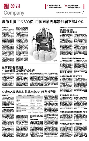炼油业务巨亏600亿 中国石油去年净利润下滑4.9%