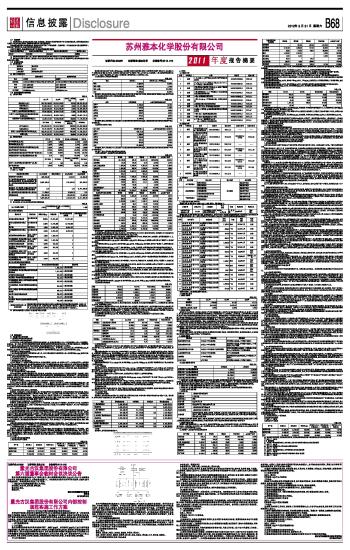 苏州雅本化学股份有限公司2011年度报告摘要 2012-03-31 来源:证券时报网 作者: