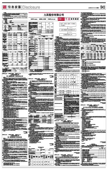 九阳股份有限公司2011年度报告摘要 2012-03-31 来源:证券时报网 作者: