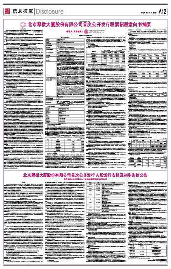 北京翠微大厦股份有限公司首次公开发行A股发行安排及初步询价公告