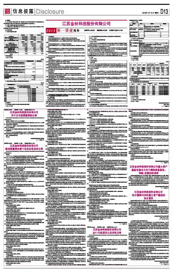 江苏金材科技股份有限公司2012第一季度报告