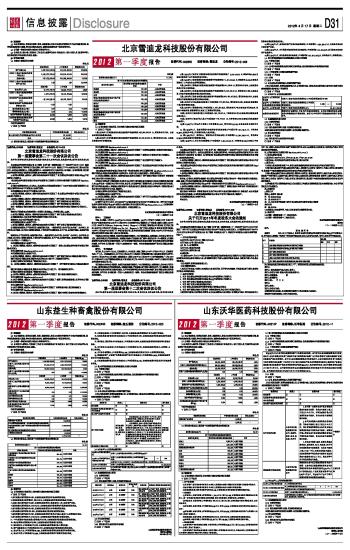 山东益生种畜禽股份有限公司2012第一季度报告 2012-04-17 来源:证券时报网 作者: