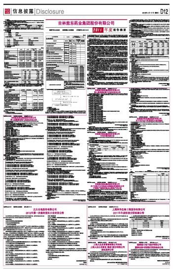 | 吉林敖东药业集团股份有限公司公告(系列) | 2012-04-17 | |