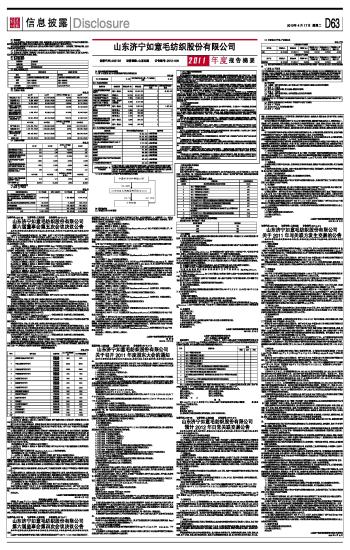 山东济宁如意毛纺织股份有限公司2011年度报告摘要