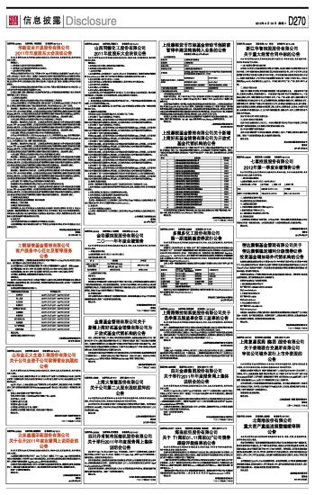 | 四川金路集团股份有限公司 关于举行2011年年度报告网上集体 说明会的公告 | 2012-04-24 | |
