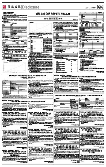 浦银安盛货币市场证券投资基金2012第一季度报告 2012-04-24 来源:证券时报网 作者: