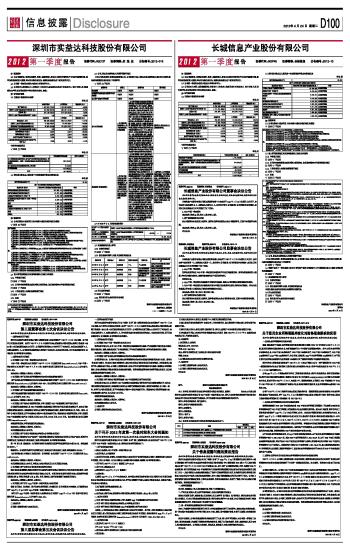 深圳市实益达科技股份有限公司2012第一季度报告 2012-04-24 来源:证券时报网 作者:
