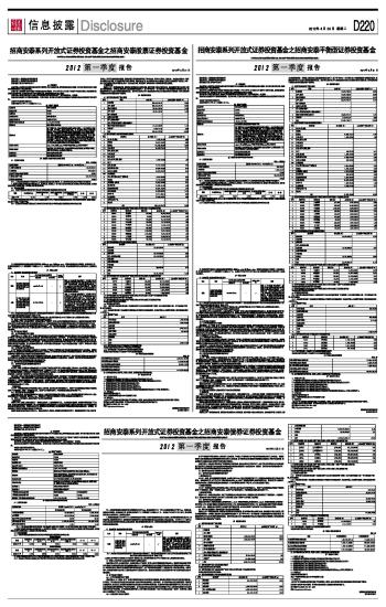 基金管理人:招商基金管理有限公司 基金托管人:招商银行股份有限公司 报告送出日期:2012年4月24日 §1 重要提示 基金管理人的董事会及董事保证本报告所载资料不存在虚假记载、误导性陈述或重大遗漏,并对其内容的真实性、准确性和完整性承担个别及连带责任。 基金托管人招商银行股份有限公司根据本基金合同规定,于2012年4月20日复核了本报告中的财务指标、净值表现和投资组合报告等内容,保证复核内容不存在虚假记载、误导性陈述或者重大遗漏。 基金管理人承诺以诚实信用、勤勉尽责的原则管理和运用基金资产,但不保证基金一定盈利。 基金的过往业绩并不代表其未来表现。投资有风险,投资者在作出投资决策前应仔细阅读本基金的招募说明书及其更新。 本报告中财务资料未经审计。 本报告期自2012年1月1日起至3月31日止。 §2 基金产品概况 ■ §3 主要财务指标和基金净值表现 3.1 主要财务指标 单位:人民币元 ■ 注:1、上述基金业绩指标不包括持有人认购或交易基金的各项费用,计入费用后实际收益水平要低于所列数字; 2、本期已实现收益指基金本期利息收入、投资收益、其他收入(不含公允价值变动收益)扣除相关费用后的余额,本期利润为本期已实现收益加上本期公允价值变动收益。 3.2 基金净值表现 3.2.1 本报告期基金份额净值增长率及其与同期业绩比较基准收益率的比较 招商安泰债券A ■ 招商安泰债券B ■ 注:业绩比较基准收益率=95%×中信标普国债指数+5%×同业存款利率,业绩比较基准在每个交易日实现再平衡。 3.2.2 自基金合同生效以来基金累计净值增长率变动及其与同期业绩比较基准收益率变动的比较 ■ ■ 注:1、招商安泰债券的债券投资比例范围为不低于85%,现金或到期日在一年以内的政府债券大于等于5%。根据本系列基金合同规定,本基金设立后,投资建仓期为三个月,特殊情况下不超过六个月。本基金于2003年4月28日成立,建仓期结束时相关比例均符合上述规定的要求; 2、招商安泰债券从2006年4月12日起费率结构进行调整,在原申购赎回费收费方式基础上新增销售服务费收费方式:保留原申购、赎回费收费方式,选择缴纳申购赎回费而不缴纳销售服务费的基金份额为A类基金份额。2006年4月11日登记在册的本基金基金份额自动归为A类基金份额;增加销售服务费收费方式,选择缴纳销售服务费而不缴纳申购赎回费的基金份额为B类基金份额。 §4 管理人报告 4.1 基金经理(或基金经理小组)简介 ■ 注:1、本基金首任基金经理的任职日期为本基金合同生效日,后任基金经理的任职日期以及历任基金经理的离任日期为公司相关会议作出决定的公告(生效)日期; 2、证券从业年限计算标准遵从行业协会《证券业从业人员资格管理办法》中关于证券从业人员范围的相关规定。 4.2 管理人对报告期内本基金运作遵规守信情况的说明 基金管理人声明:在本报告期内,本基金管理人严格遵守《中华人民共和国证券投资基金法》、《证券投资基金运作管理办法》等有关法律法规及其各项实施准则的规定以及《招商安泰系列开放式证券投资基金基金合同》等基金法律文件的约定,本着诚实信用、勤勉尽责的原则管理和运用基金资产,在严格控制风险的前提下,为基金持有人谋求最大利益。本报告期内,基金运作整体合法合规,无损害基金持有人利益的行为。基金的投资范围以及投资运作符合有关法律法规及基金合同的规定。 4.3 公平交易专项说明 4.3.1 公平交易制度的执行情况 基金管理人(以下简称“公司”)已建立较完善的研究方法和投资决策流程,确保各投资组合享有公平的投资决策机会。公司建立了所有组合适用的投资对象备选库,制定明确的备选库建立、维护程序。公司拥有健全的投资授权制度,明确投资决策委员会、投资总监、投资组合经理等各投资决策主体的职责和权限划分,投资组合经理在授权范围内可以自主决策,超过投资权限的操作需要经过严格的审批程序。公司的相关研究成果向内部所有投资组合开放,在投资研究层面不存在各投资组合间不公平的问题。公司交易部在报告期内,对所有组合的各条指令,均在中央交易员的统一分派下,本着持有人利益最大化的原则执行了公平交易。 4.3.2 异常交易行为的专项说明 公司严格控制不同投资组合之间的同日反向交易,严格禁止可能导致不公平交易和利益输送的同日反向交易。确因投资组合的投资策略或流动性等需要而发生的同日反向交易,公司要求相关投资组合经理提供决策依据,并留存记录备查,完全按照有关指数的构成比例进行投资的组合等除外。 本报告期内,本基金各项交易均严格按照相关法律法规、基金合同的有关要求执行,本公司所有投资组合参与的交易所公开竞价同日反向交易不存在成交较少的单边交易量超过该证券当日成交量的5% 的情形。报告期内亦未发现其他有可能导致不公平交易和利益输送的重大异常交易行为。 4.4 报告期内基金的投资策略和业绩表现说明 4.4.1 报告期内基金投资策略和运作分析 (1)宏观经济分析: 2012年一季度,经济增速继续平稳回落,CPI同比增长3.8%,较去年四季度明显下行,宏观经济呈现经济增长和物价双降局面。货币政策方面,央行于2月末下调存款准备金率0.5%,反映了货币政策预调、微调的基调不变。资金面方面,虽然外汇占款维持在