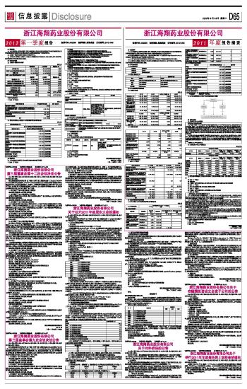 证券代码:002099 证券简称:海翔药业 公告编号:2012-009 浙江海翔药业股份有限公司2012第一季度报告 2012-04-24 来源:证券时报网 作者: