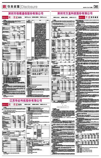 证券代码:300235 证券简称:方直科技 公告编号:2012-010 深圳市方直科技股份有限公司2011年度报告摘要 2012-04-24 来源:证券时报网 作者: