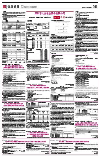 证券代码:000555 证券简称:ST 太光 公告编号:2012-013 深圳市太光电信股份有限公司2011年度报告摘要 2012-04-24 来源:证券时报网 作者: