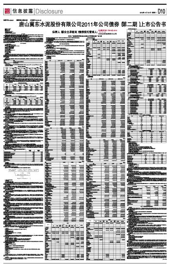 证券代码:000401 股票简称:冀东水泥 公告编号:2012-23 唐山冀东水泥股份有限公司2011年公司债券(第二期)上市公告书 2012-04-24 来源:证券时报网 作者: