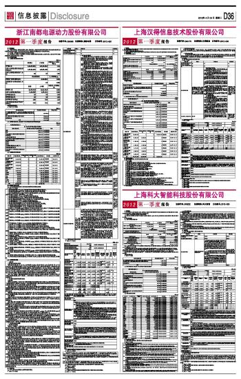 证券代码:300222 证券简称:科大智能 公告编号:2012-029 上海科大智能科技股份有限公司2012第一季度报告 2012-04-24 来源:证券时报网 作者: